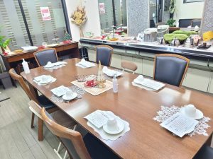 もとヘアーサロンなので、洗髪のカウンターがあり有効利用できました。皆さんが素敵にお菓子を並べてくださり、華やかになりました♪